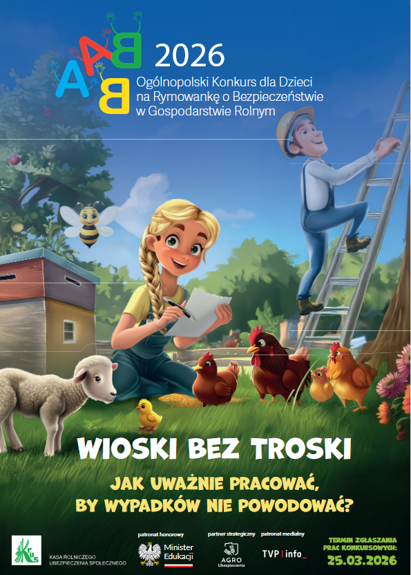 Zachęcamy do udziału w VII Ogólnopolskim Konkursie dla Dzieci na Rymowankę o Bezpieczeństwie w Gospodarstwie Rolnym „Wioski bez troski”.