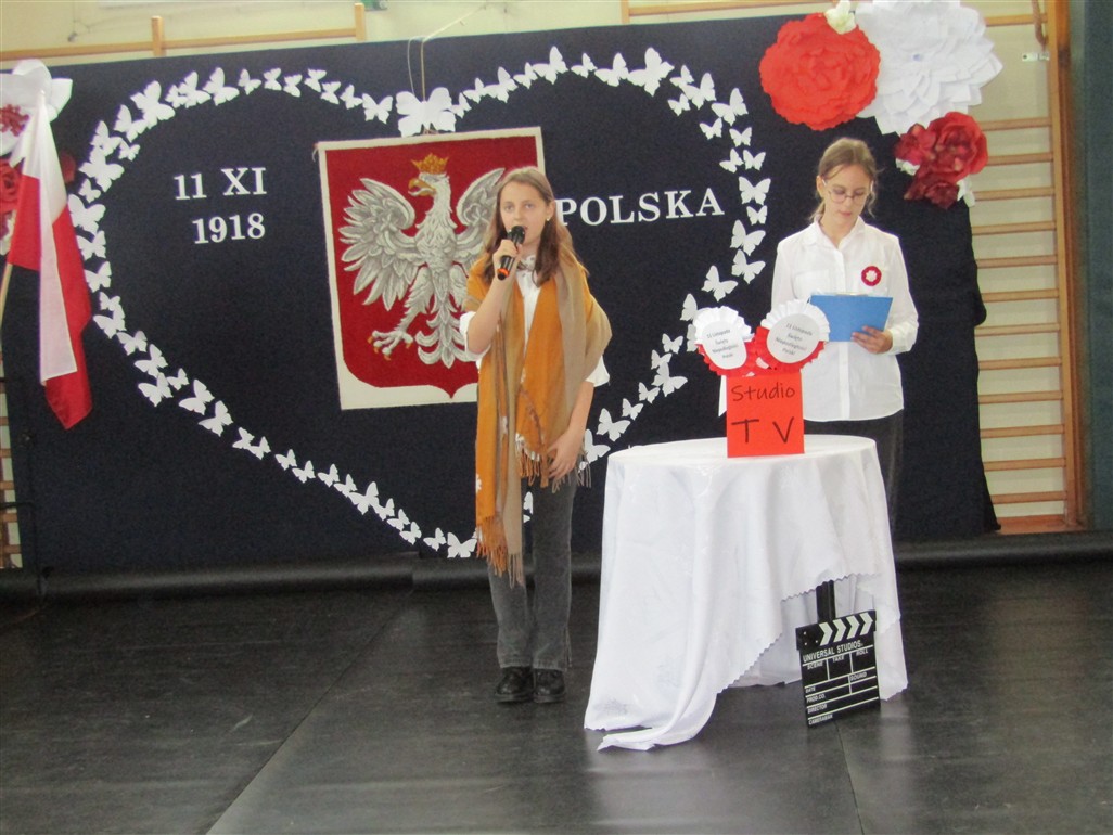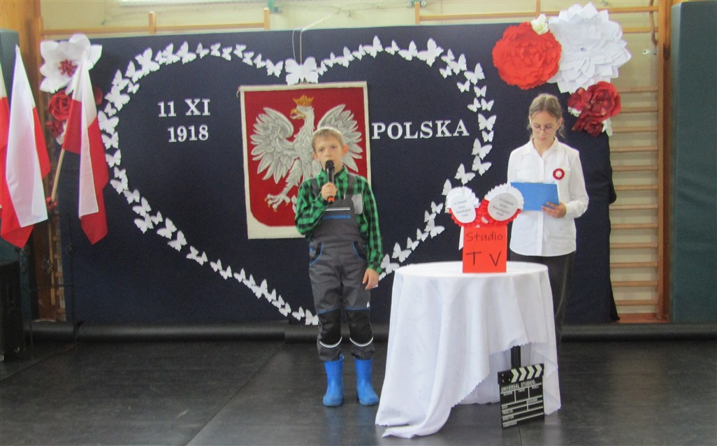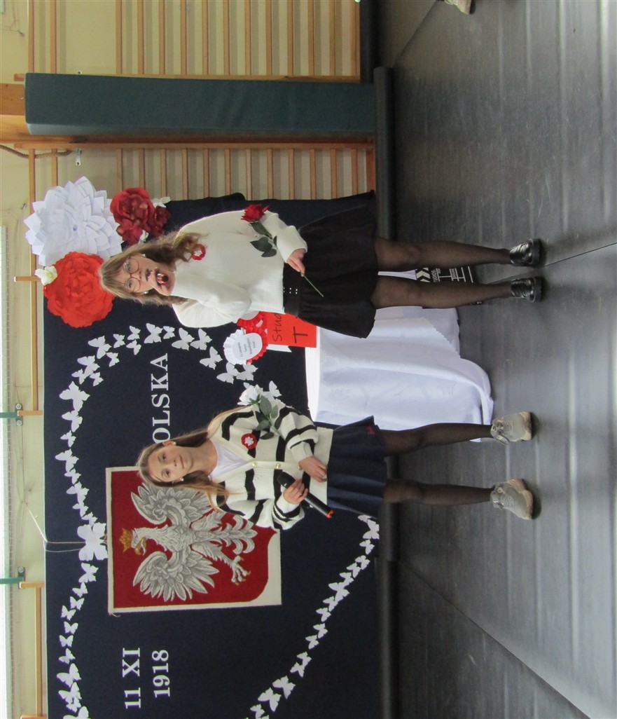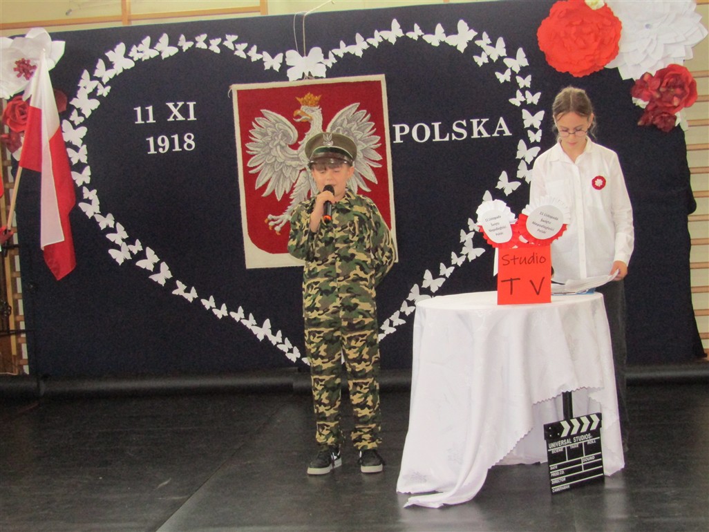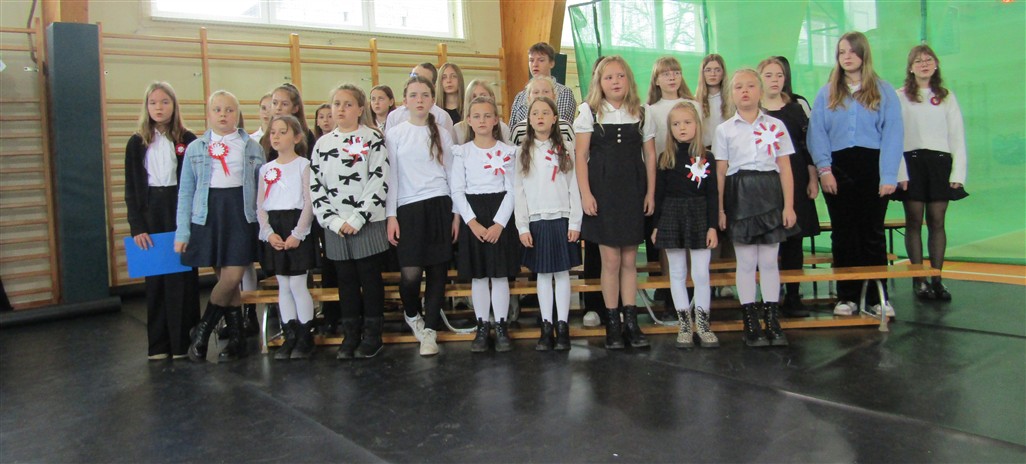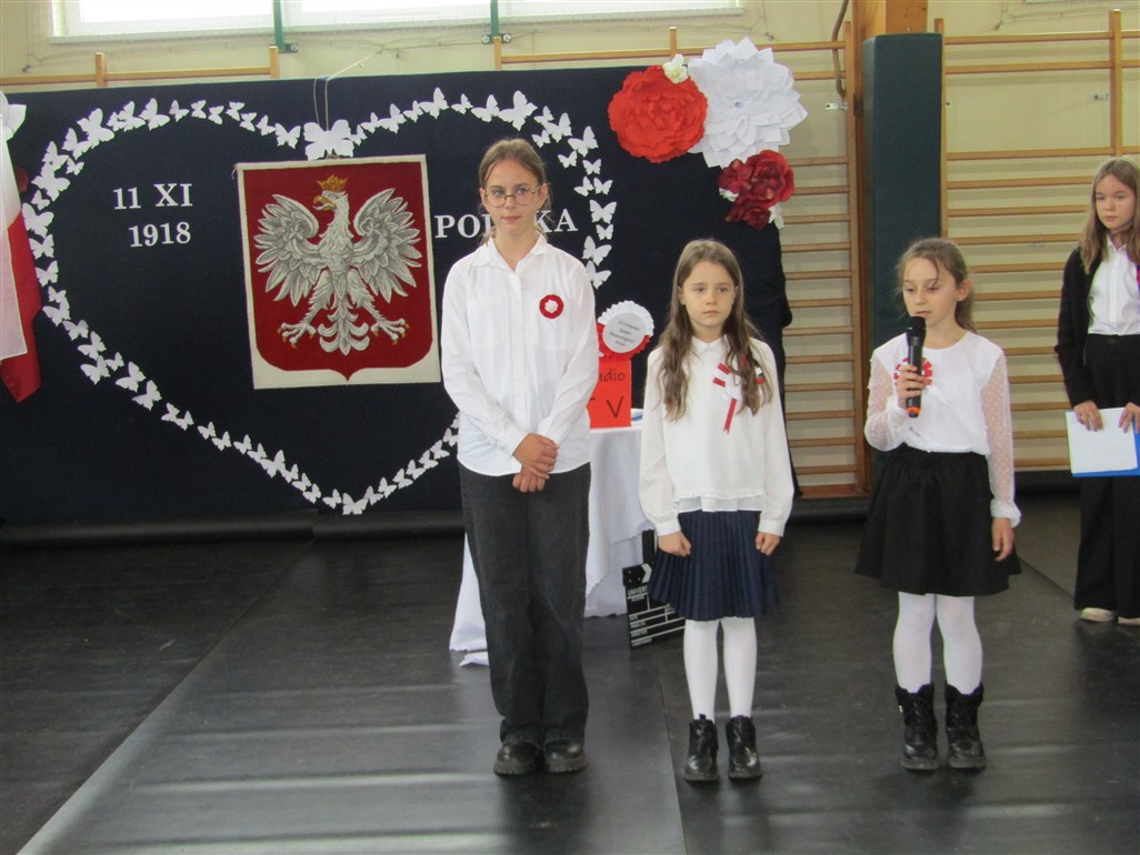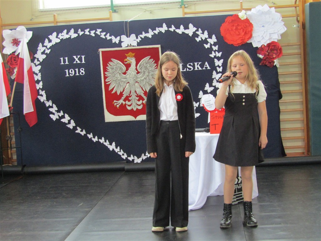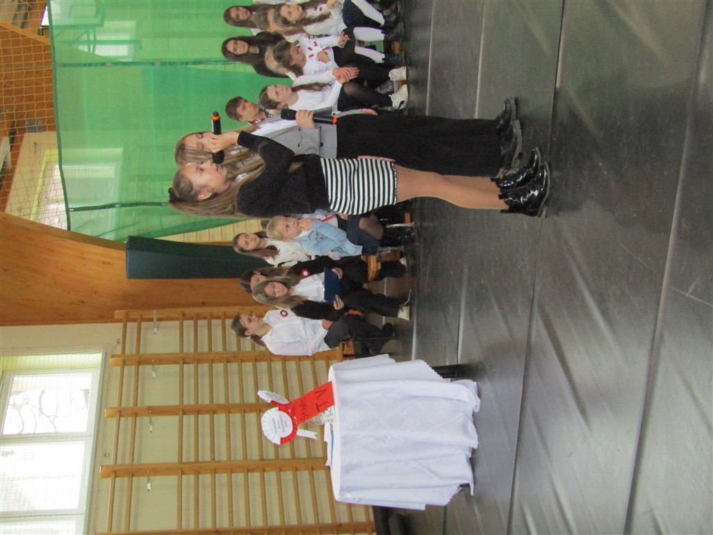 Akademię patriotyczną przygotowała klasa V wraz z zespołem wokalnym. Uczniowie pokazali nam, w jaki sposób możemy okazywać miłość naszej Ojczyźnie.