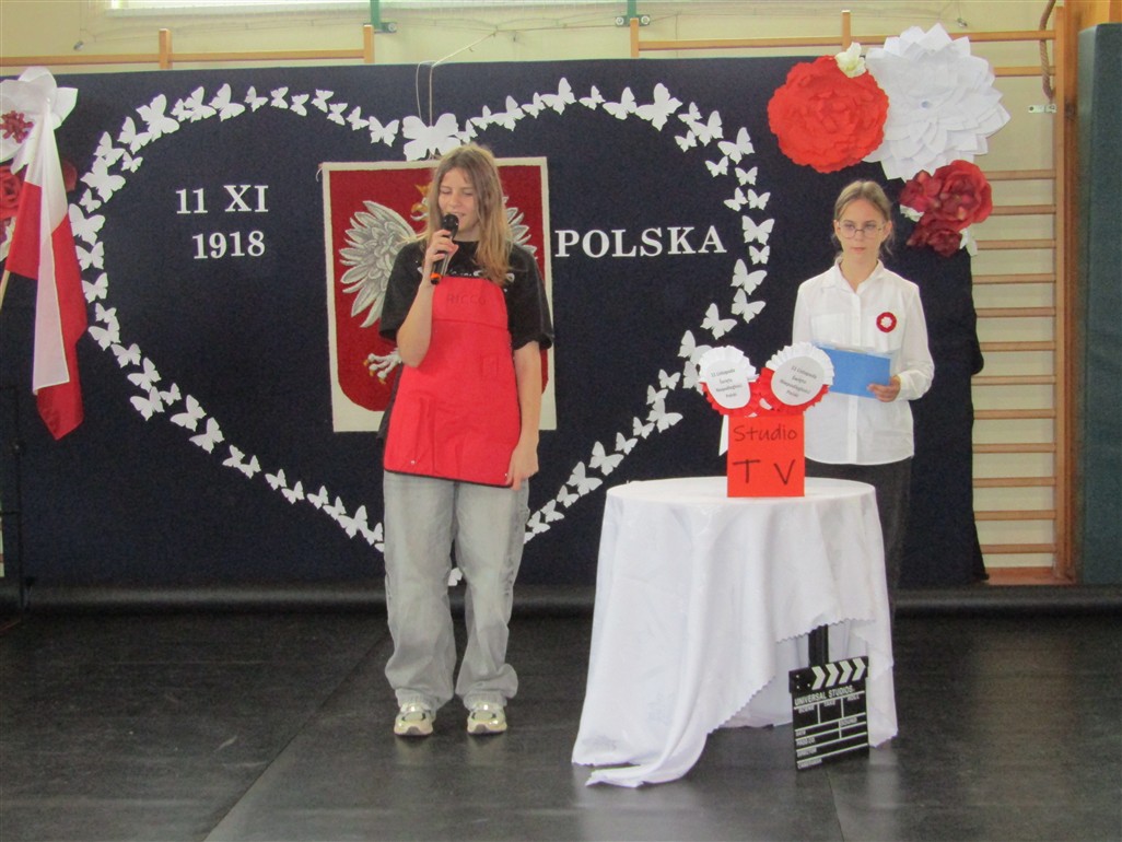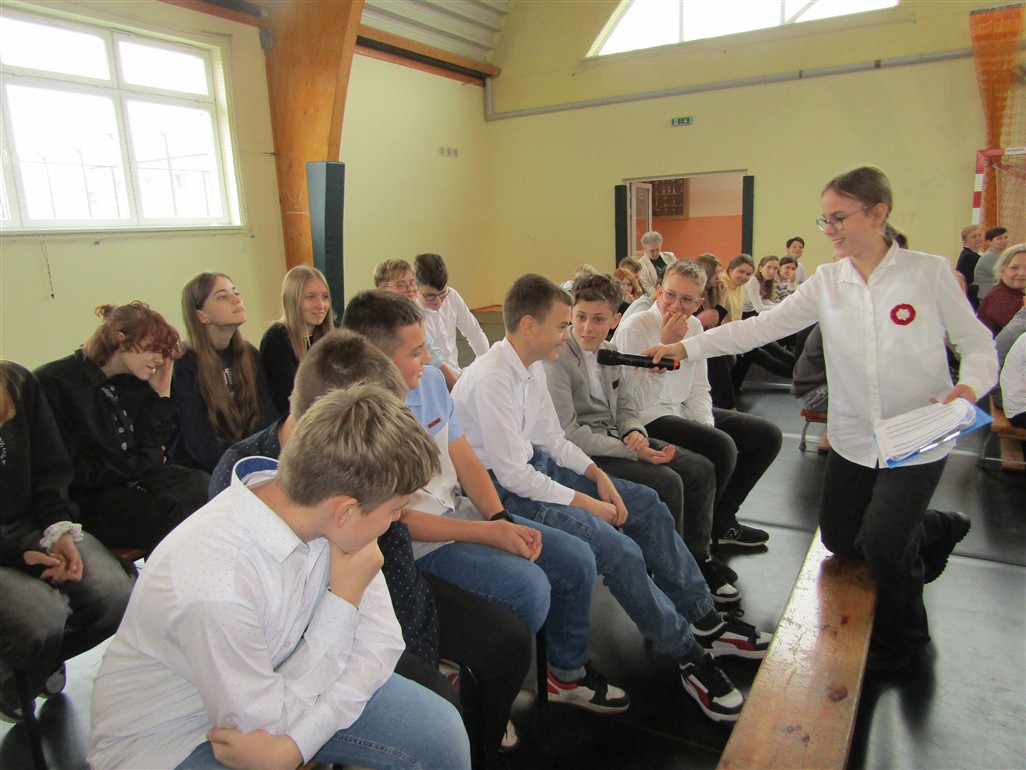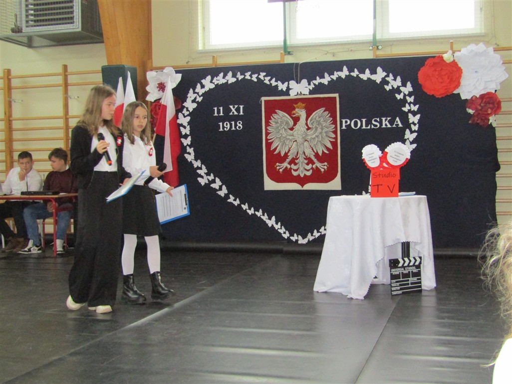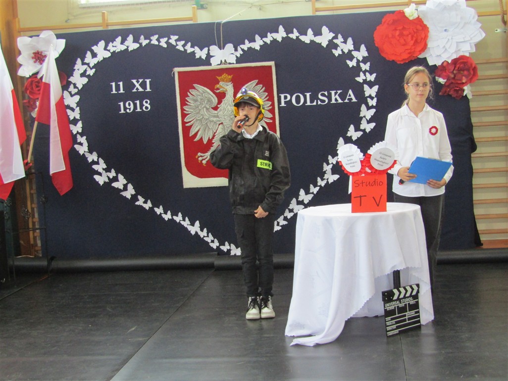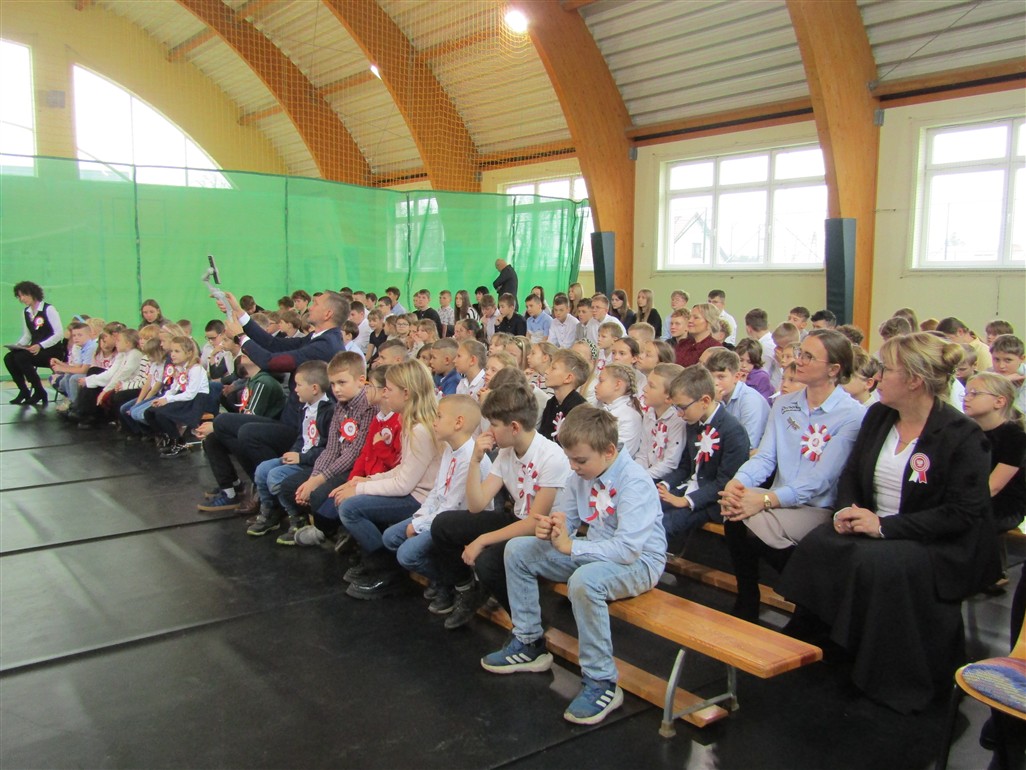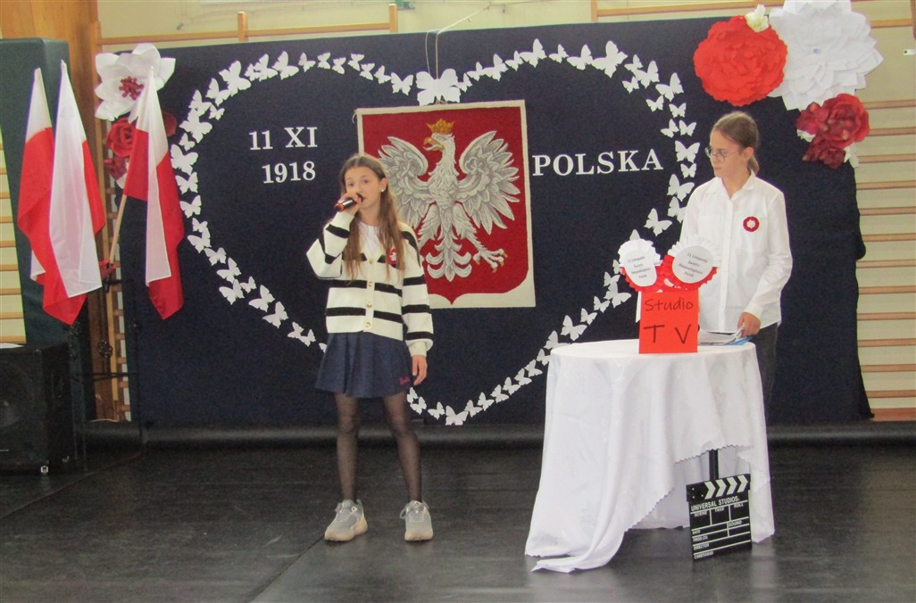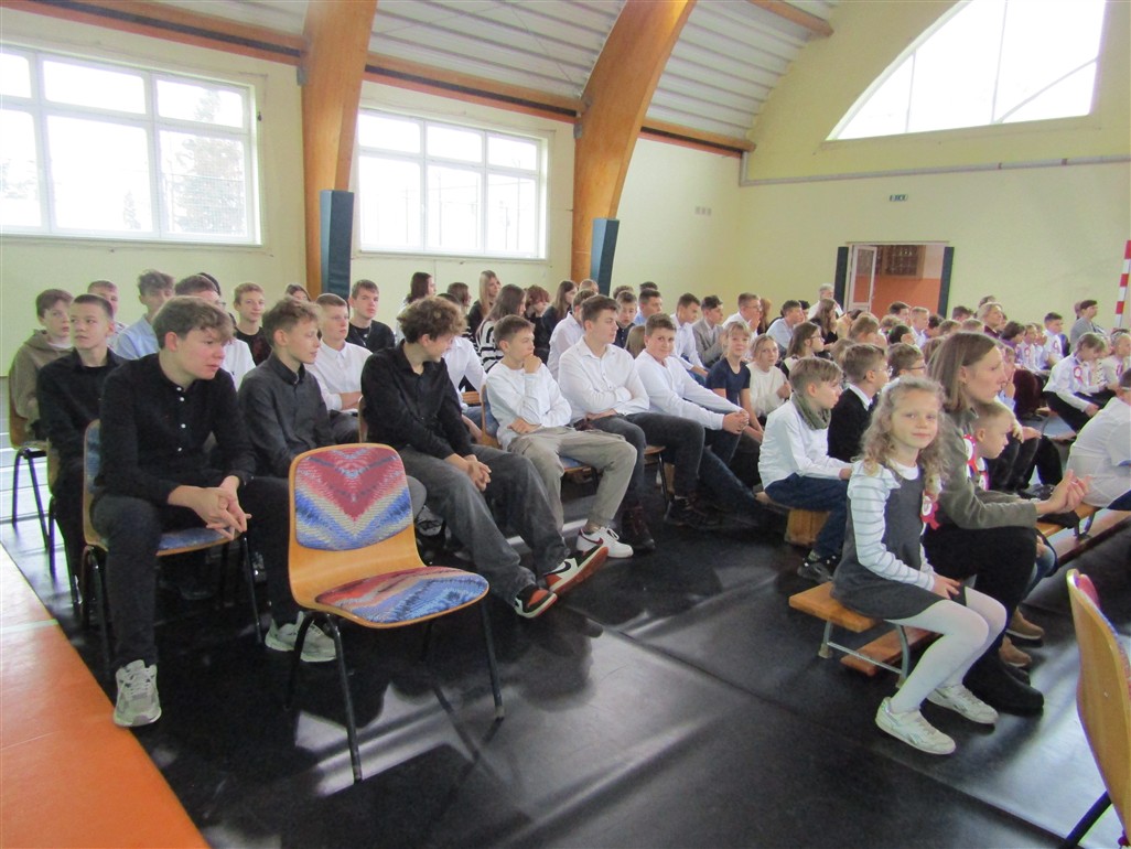 Akademię patriotyczną przygotowała klasa V wraz z zespołem wokalnym. Uczniowie pokazali nam, w jaki sposób możemy okazywać miłość naszej Ojczyźnie.