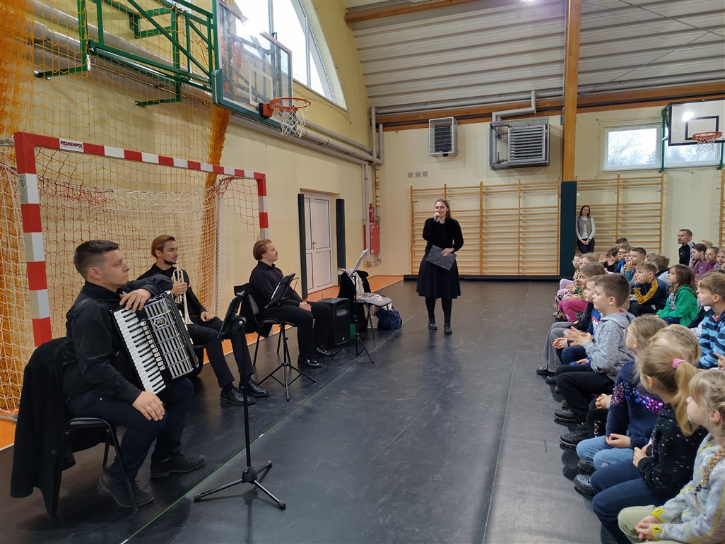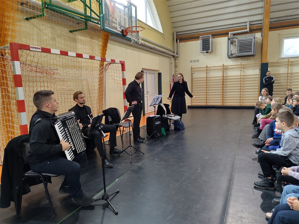 Przypomnieliśmy sobie budowę akordeonu i trąbki. Wysłuchaliśmy pieśni patriotycznych, wspólnie zaśpiewaliśmy "Mazurka Dąbrowskiego". Utrwaliliśmy nazwy i melodie tańców narodowych.
