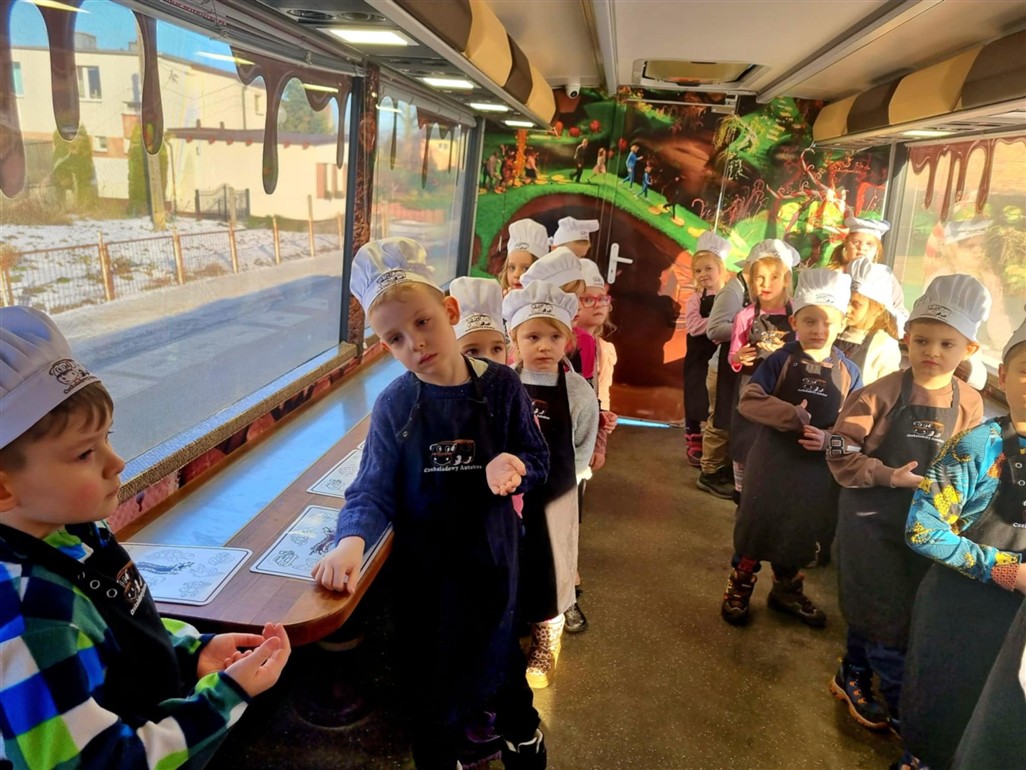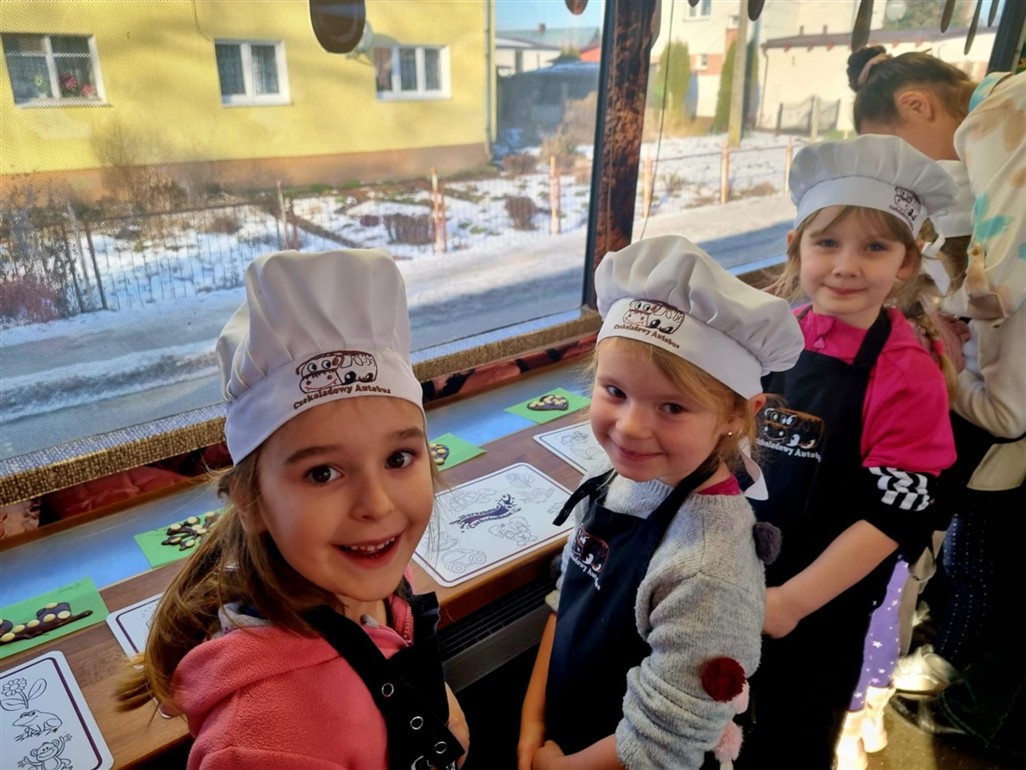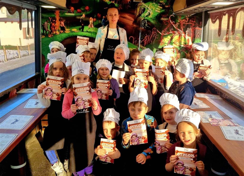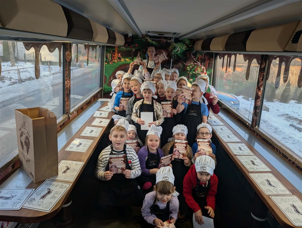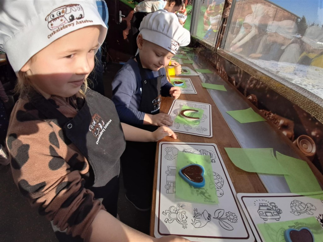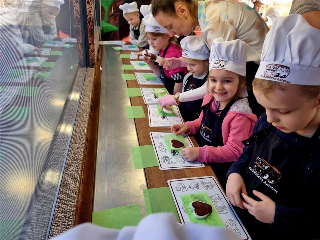 Dzieci wzięły udział w czekoladowych warsztatach cukierniczych, w ramach których wykonały samodzielnie swoje własne czekoladki.