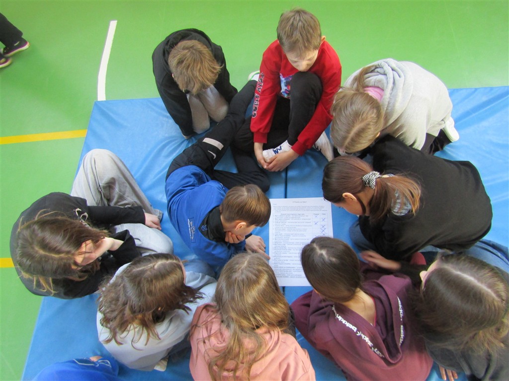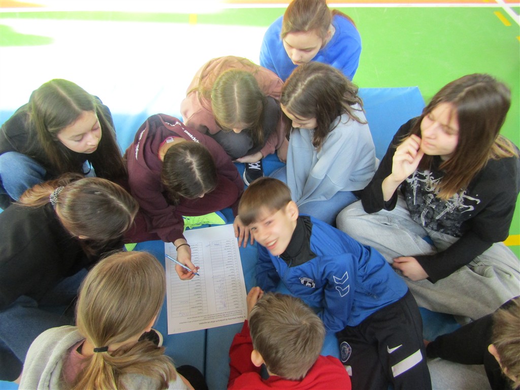 Rywalizacja międzyklasowa odbyła się w sali gimnastycznej. Zadania dotyczyły: