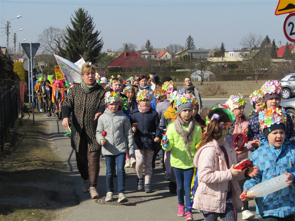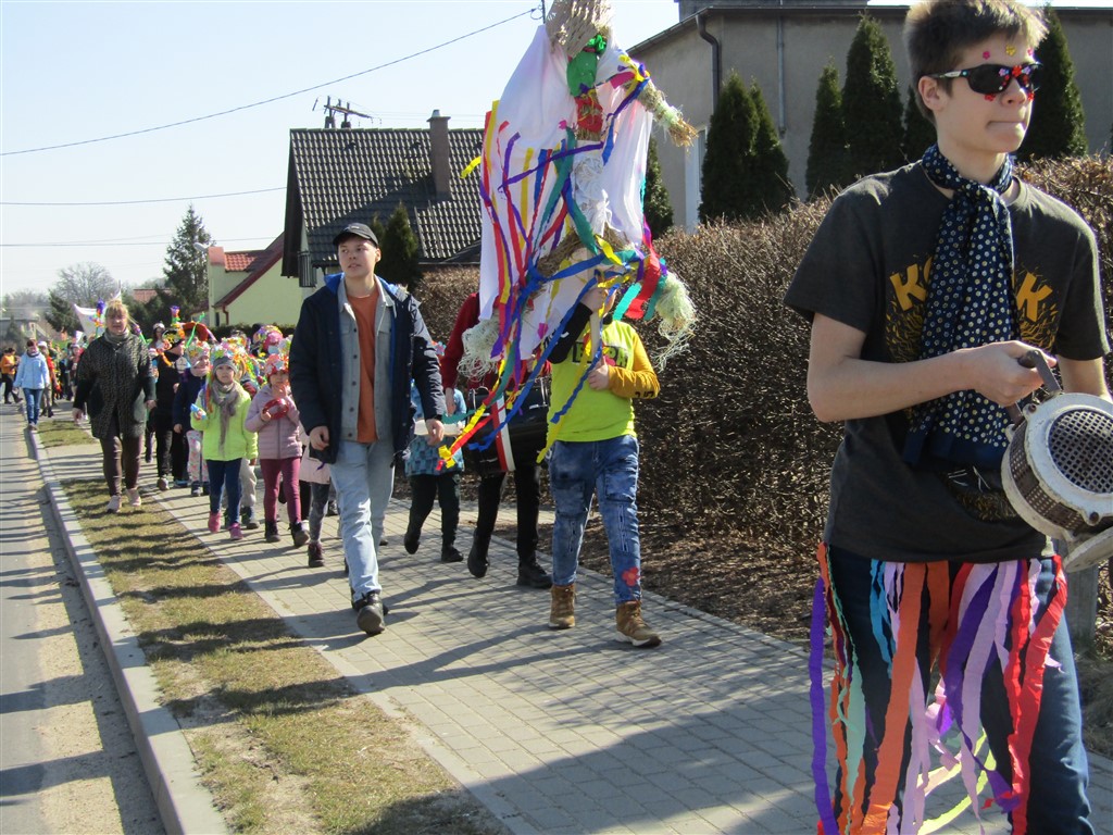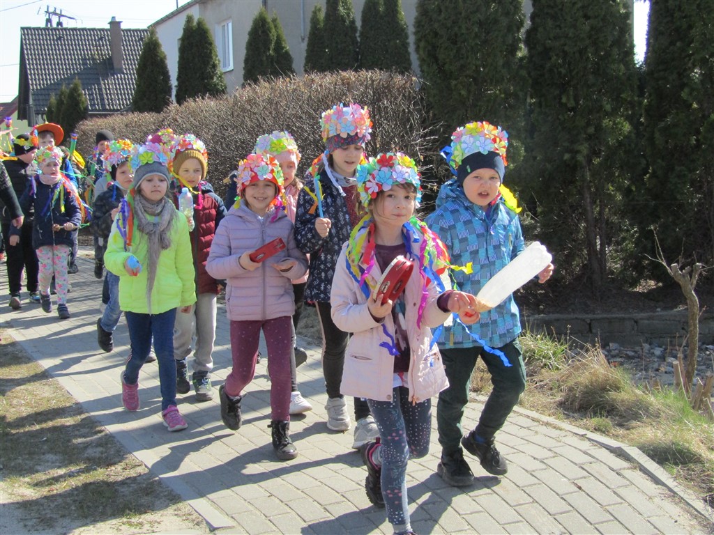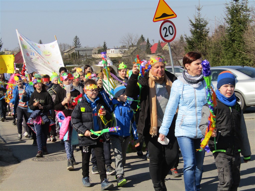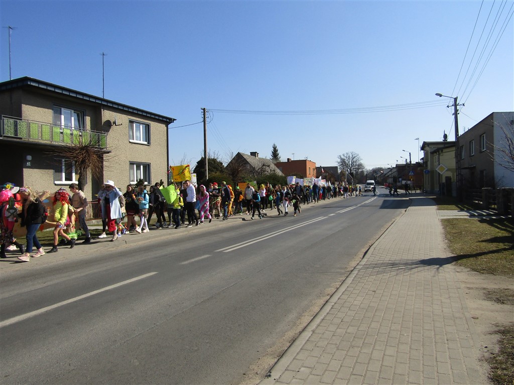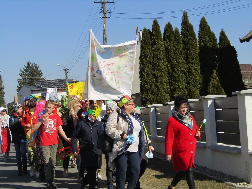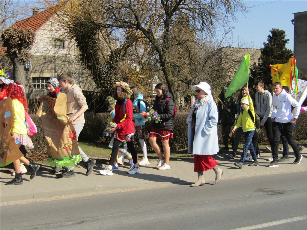 Każda klasa przygotowała stroje, plakaty, transparenty witające wyczekiwaną porę roku. Pogoda nam sprzyjała. Było głośno, wesoło i kolorowo.