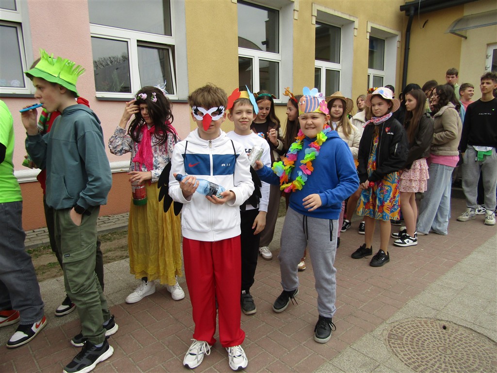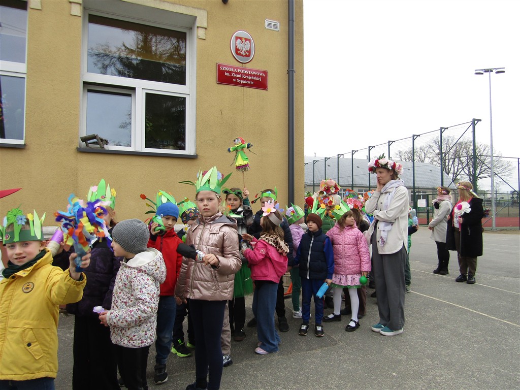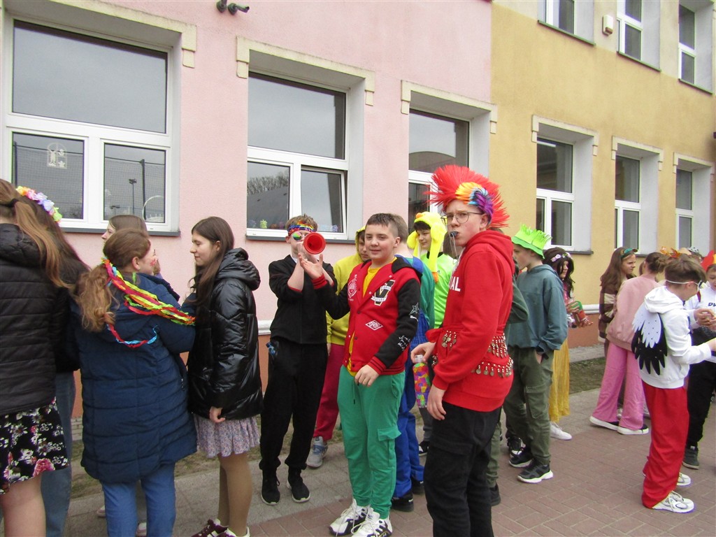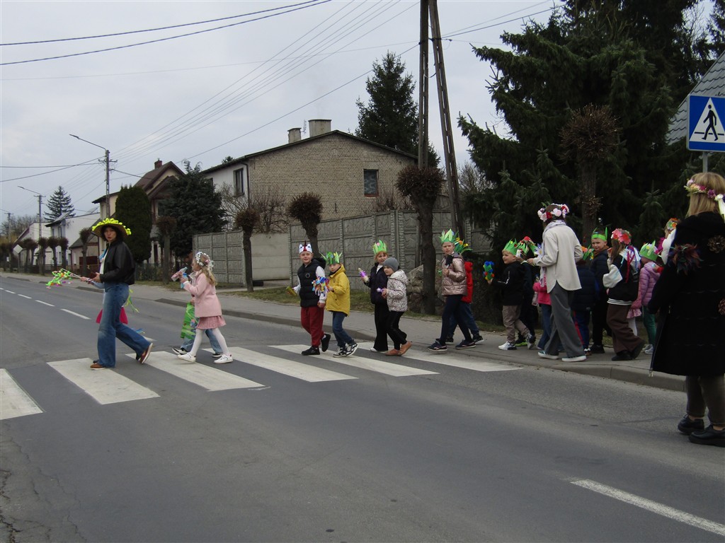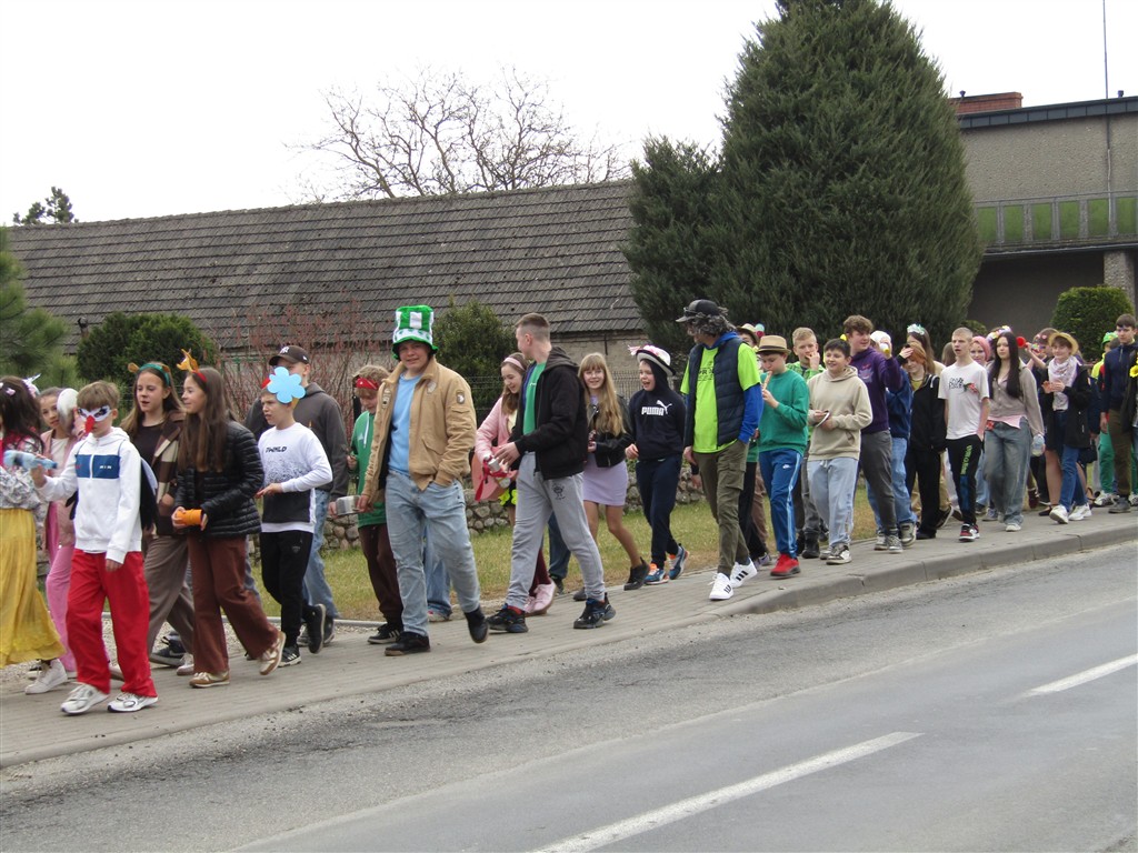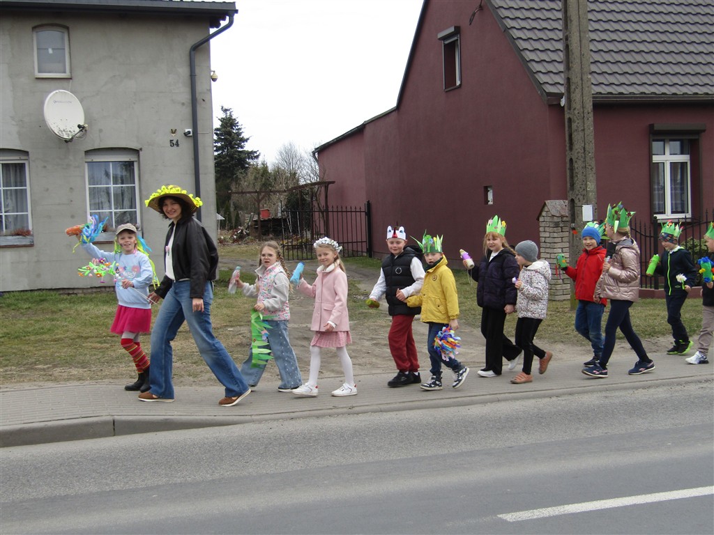 Chyba wszyscy mieszkańcy (i nie tylko) słyszeli, jak serdecznie ją przywitaliśmy. Zarówno przedszkolaki, jak i uczniowie przeszli przez wieś w kolorowych strojach z głośnymi okrzykami i odgłosami.